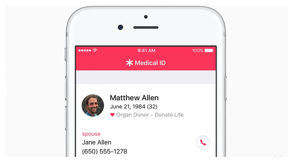 The Health app on iPhone provides a complete view of your health and fitness data all in one place. The app includes Medical ID, which makes critical health information available in case of emergency to first responders and is accessible from the iPhone lock screen. Medical ID can display categories like medical conditions, allergies, medications, blood type and emergency contacts. And with iOS 10, Medical ID offers the ability to register as an organ, eye and tissue donor with Donate Life America.